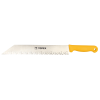 Ásványgyapot vágó kés 480 mm, élhossz 335 mm, monomateriál markolat TOPEX ásványgyapot-vágó kés, 480 mm hosszú. Ásványgyapot, kemény műanyag hab vagy habosított poliészter vágására szolgál. A 335 mm hosszú, egyik oldalán fogazott pengén metrikus beoszt