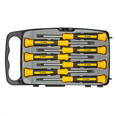 A TOPEX műszerész csavarhúzó készlet kiválóan beválik szerelési, barkácsolási munkákban. A hét csavarhúzó mindegyikének hegye nagy ellenállóképességű, a szerszámnak hosszú élettartamot biztosító króm-vanádium acélból készült. A mágneses hegy megkönnyíti a