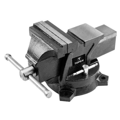 TOPEX lakatos satu, forgatható, nagy nyomóerejű pofákkal. Kézi vagy gépi megmunkálásnak alávetett munkadarabok rögzítésére szolgál. A massziv öntöttvas szerkezet, üllővel és edzett menettel, nehéz munkákhoz való felhasználásra is alkalmassá teszi. Az elfo
