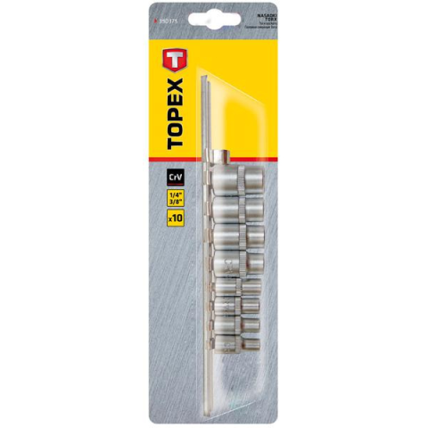 A TOPEX Torx dugókulcsok praktikus, a Torx fejű csavarok be- és kicsavarására szolgáló szerszámkészletet alkotnak. A készlet 9 db 1/4-os fészkű, 4 db 3/8 -os fészkű dugókulcsot, valamint szűkítőt tartalmaz. Mindegyik elem kiváló minőségű, a szerszámnak ho