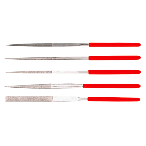 TOPEX gyémánt tűreszelő készlet, hosszúságuk 140 mm, átmérőjük 4 mm. Szerszámok, kerámia anyagok élezésére és felületek simítására, csiszolására szolgál. Az öt univerzális alak lehetővé teszi legkülönfélébb alkalmazásukat. Markolatuk gumírozott. A gyémánt bevonat galvanikusan került felvitelre. A TOPEX márka ezermestereknek készül.