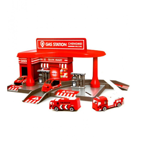Hívd el a barátaidat, és játszatok az összeszerelhető fém gáztöltő állomással. Fém gáztöltő állomás 4 db járművel. Tartalma: állomás shoppal + 2 db terebélyes fa + 1 db kosaras tűzoltó autó + 1 db létrás tűzoltó autó 2 db töltő állomás + 2 db sürgősség