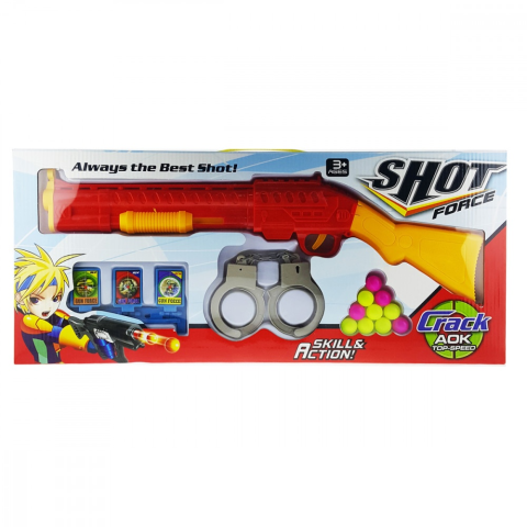 Játékpuska műanyag töltettel. 3 éves kor feletti gyerekeknek! Színes játékpuska, 10 színes játékgolyóval, játékbilinccsel, céltáblával. Tanulj meg pontosan célozni a céltábla segítségével, majd kapd el ellenfeledet a bilincs segítségével.