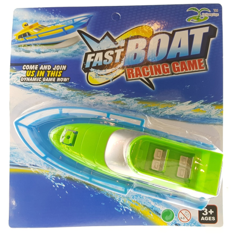 Elemes motorcsónak lapon, 3 éves kor felett. Zöld-Kék színkombinációjú elemes motorcsónak, a vagány kinézet, és a remek szórakozás jelképe. A termék csomagolása az elemet nem tartalmazza! Hajó méret: 22 cm Anyaga: Műanyag