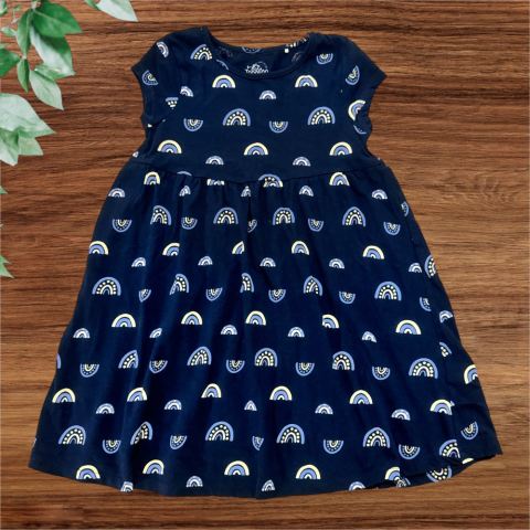 Szivárvány mintás ruha Kissé bővülő szabású, kerek nyakkivágású, anyagában szivárvány mintás. Kellemes 100% pamut anyag. Bibátlan állapotú.