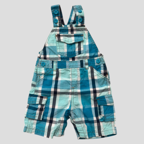 Kék kockás kantáros nadrág Egyenes szabású, pántja és oldala gombos, ülepnél patentos. Hibátlan állapotú.