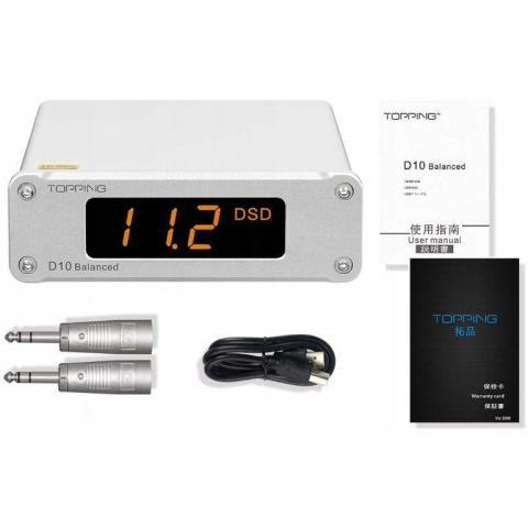 1 kép Topping D10B Szimmetrikus asztali USB DAC 32bit 384KHz DSD256 Ezüst (6974268480413)