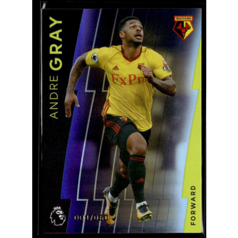 Az eladásra kínált 2016 Topps English Premier League Platinum Purple #89 Andre Gray 001/050 focis kártya NM-MT állapotban van. A focis kártyákat legtöbb esetben UP Platinum/Standard puha védőtokban és/vagy UP Toploader (kemény védőtok)-ben küldjük. Az