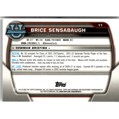 1 kép Topps 2022-23 Bowman Chrome University #11 Brice Sensabaugh
