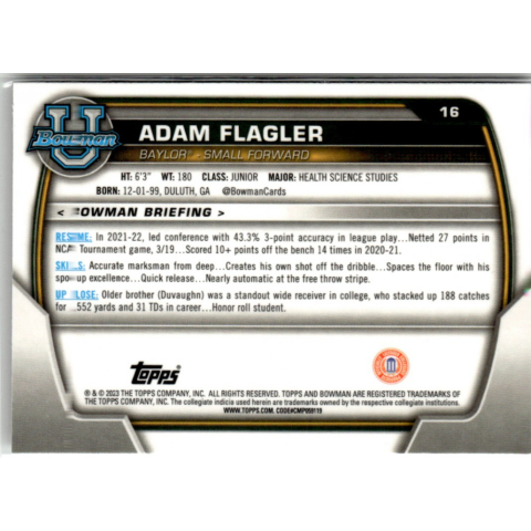 1 kép Topps 2022-23 Bowman Chrome University #16 Adam Flagler