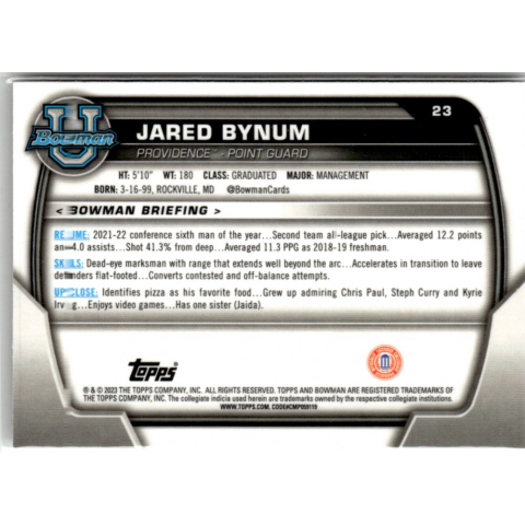 1 kép Topps 2022-23 Bowman Chrome University #23 Jared Bynum