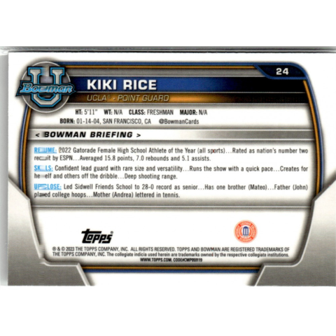 1 kép Topps 2022-23 Bowman Chrome University #24 Kiki Rice