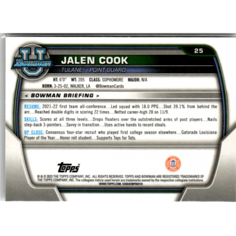 1 kép Topps 2022-23 Bowman Chrome University #25 Jalen Cook