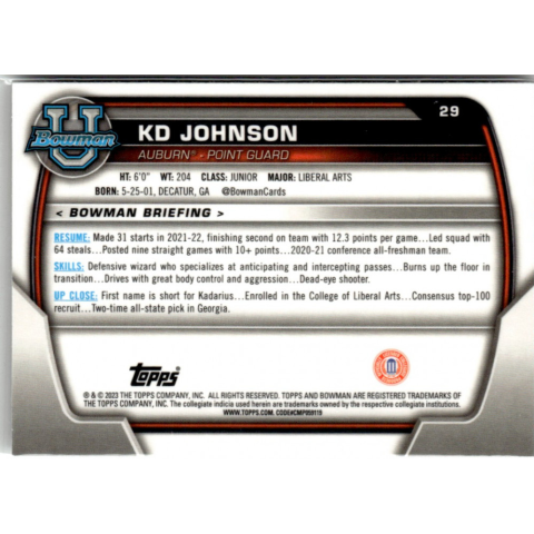 1 kép Topps 2022-23 Bowman Chrome University #29 KD Johnson