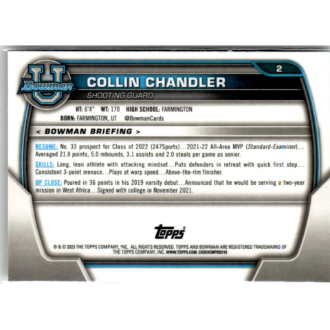 1 kép Topps 2022-23 Bowman Chrome University #2 Collin Chandler