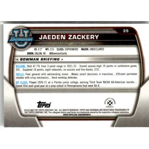 1 kép Topps 2022-23 Bowman Chrome University #35 Jaeden Zackery
