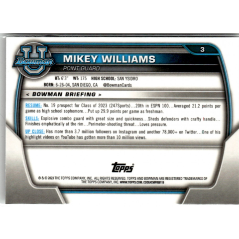1 kép Topps 2022-23 Bowman Chrome University #3 Mikey Williams