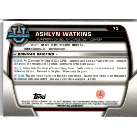 1 kép Topps 2022-23 Bowman Chrome University #73 Ashlyn Watkins