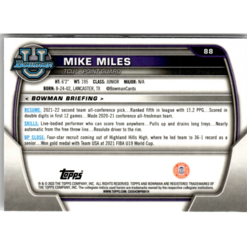 1 kép Topps 2022-23 Bowman Chrome University #88 Mike Miles