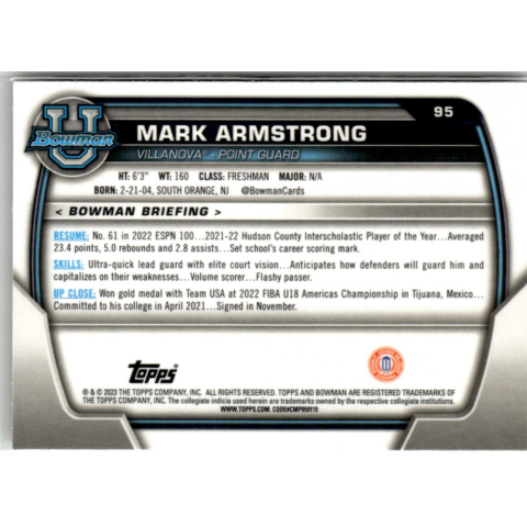 1 kép Topps 2022-23 Bowman Chrome University #95 Mark Armstrong