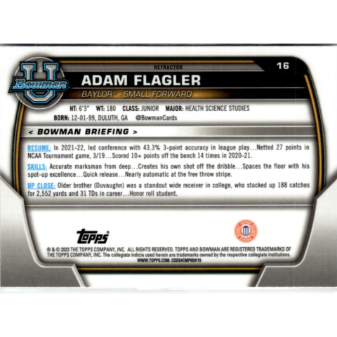 1 kép Topps 2022-23 Bowman Chrome University Refractors #16 Adam Flagler