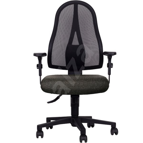 Irodaszék - forgó és ergonomikus szinkron mechanikával, terhelhetősége 110 kg, lapos ülőke állítható magassággal, deréktámasz, állítható magasságú és dőlésű háttámla, kartámasz állítható függőlegesen, műanyag görgők, műanyag konstrukció, huzat anyaga textil és hálós, lábak anyaga műanyag, fékezhető kerekek, szélessége 63 cm, tömege 19 kg Biztosíts kényelmes munkakörnyezetet. Az ergonomikus kialakítású TOPSTAR irodai forgószék mindenki számá