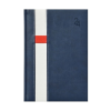 Kétféle, matt, bőrhatású és eltérő felületű, hőre színeződő műbőr bevonóval, varrással díszitett, gumis tolltartóval ellátott, fehér tömbös naptár, jelzőszalaggal és sarokperforációval (kivéve zsebnaptár). Vaknyomással és lézergravírozással emblémázható.
