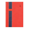 Kétféle, matt, bőrhatású és eltérő felületű, hőre színeződő műbőr bevonóval, varrással díszitett, gumis tolltartóval ellátott, fehér tömbös naptár, jelzőszalaggal és sarokperforációval (kivéve zsebnaptár). Vaknyomással és lézergravírozással emblémázható.