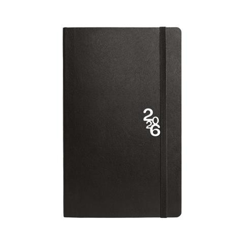 Matt műbőr bevonóval készült. -átfogó gumiszalaggal záródik -tolltartóval -sarokgömbölyített -lapok 70 g/m2 fehér ofszetpapírból -fehér heti naptár -időbeosztás: 06-22h -szürke-fehér nyomat -összesített naptár -éves tervező -havi előjegyző -teleforeg
