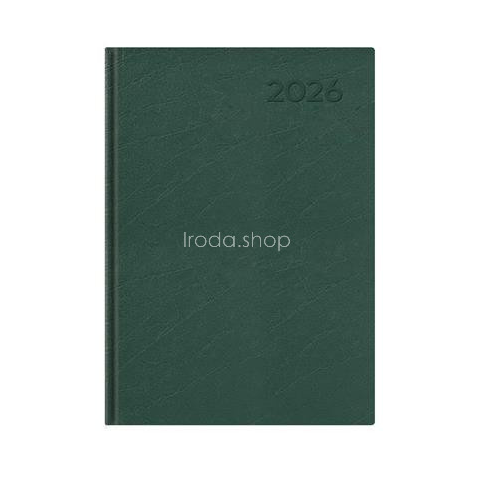 Naptár, tervező, A5, napi, TOPTIMER, Economic, zöld Fényes műbőr bevonóval készült, fehér tömbös naptár -méret: 150x210 mm -terjedelem: 352 oldal -időbeosztás félórás, 7-23.00 h -borító anyaga fényes műbőr -lap típusa 70 g, fehér ofszet -jelzős
