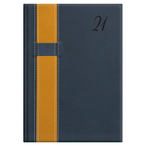 Kétféle, matt, bőrhatású és eltérő felületű, hőre színeződő műbőr bevonóval, varrással díszített naptár, gumis tolltartóval. Fehér tömbös naptár, jelzőszalaggal és sarokperforációval. Egyediesítés:...