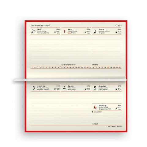 matt, hőre színeződő műbőr borító időbeosztás: órás, 8-18.00 h lapok 70 g, chamois papírból szürke-kék nyomat összesített naptár éves tervező havi előjegyző telefonregiszter/jegyzetoldalak vaknyomással és lézergravírozással emblémázható Gyártó/első EU f