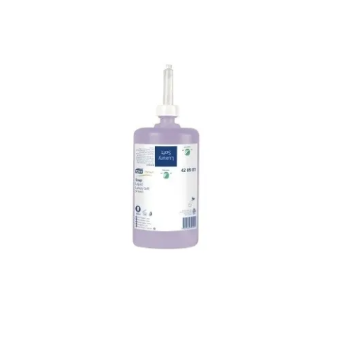 Egy exclusiv szappan mosdókba, éttermekbe, szállodákba. A Tork Prémium luxus folyékony szappan lila színű, enyhe krémes szappan, jázmin illattal. Kiváló normál kézmosáshoz. Selyemkivonattal extra lágy, krémes, kitűnő friss érzés. Jázmin illatú. Tisztítja és aktívan kondícionálja a bőrt