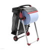A Tork hordozható állványhoz készült Tork hulladékgyűjtőzsák-tartó segítségével menet közben is egyszerű a törlésre és tisztításra elhasznált törlők és kendők gyűjtése. .