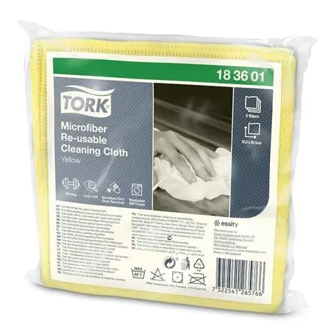 1 kép Tork Tisztítókendő, mikroszálas, újra felhasználható, 1 rétegű, W8 rendszer, TORK, sárga