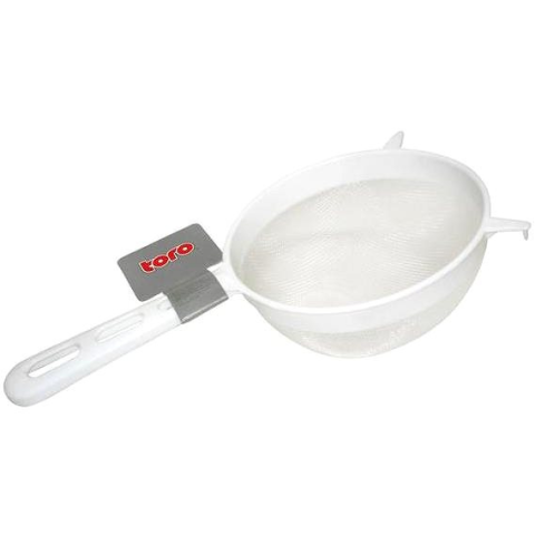 Szűrő - műanyag, alkalmas galuska, gnocchi, levesbetétek és zöldség szűrésére, finom szálú, akasztókampó, mérete 8,5 × 18 × 34 cm (Ma×Sz×H), 1 db a csomagban, fehér kivitel A praktikus Toro szűrő minden otthonban megtalálja a helyét. Alkalmas például galuska, gnocchi, levesbetétek és zöldség szűrésére. Előállítási anyaga műanyag. A műanyag szűrőt elsősorban szűrésre terv