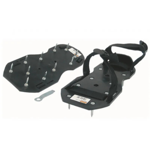 A szöges papucshoz egy hagyományos cipő csatolható, így járható lesz az aljaztkiegyenlítő. 20 mm magas, hegyes végű tüskéket tartalmaz. A szöges papucs egy méretben létezik, a megfelelő lábméretet