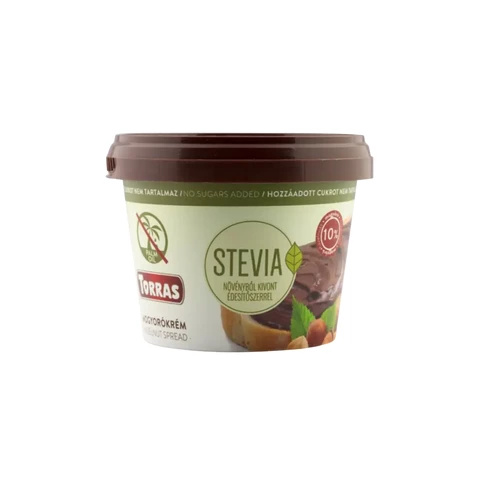 Mogyorókrém hozzáadott cukor nélkül, édesítőszerekkel. Gluténmentes. Mogyoró-tartalom: 10%