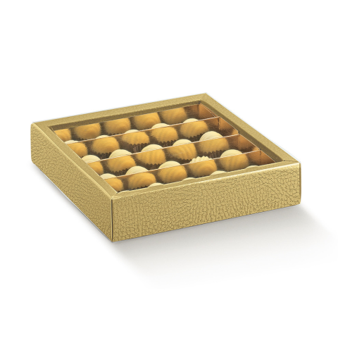 Tágas, 145×145×35 mm-es doboz, amely exkluzív csomagolást biztosít. Nagyobb, négyzetes arany bonbon doboz, amelybe akár 16 db bonbon is elhelyezhető. Ideális különleges alkalmakra.