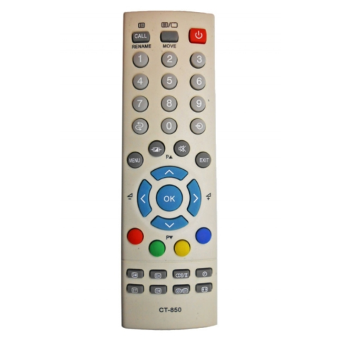 Toshiba CT-850 távirányító , utángyártott. Ez azt jelenti, hogy gombkiosztásban megegyezik a gyári távirányítóval, de nincs rajta márkajelzés. Az utángyártott távirányítóknál nincs szükség beállításra, a távirányító megérkezésekor az elemek behelyezése után egyből tudja használni az adott eszközzel(TV, DVD, stb..). A mennyiben nem találja a készülék típusszámát, küldje el részünkre és utánanézünk melyik távirányító jó hozzá.