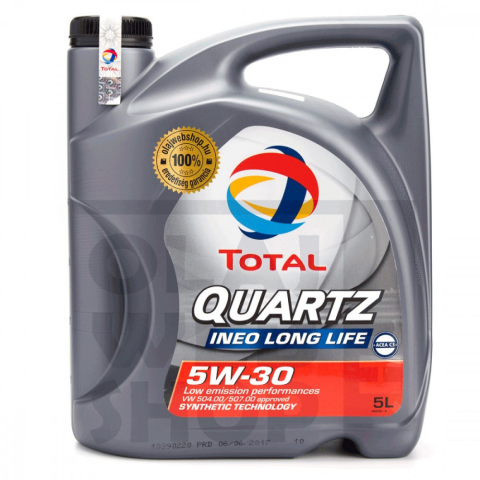 5W-30 motorolaj A Total Quartz Ineo Long Life 5W30 kifejezetten a VW-csoport Euro V-ös kibocsájtási normájú benzines és dízel motorjai számára lett kifejlesztve.Alkalmazásával extra hosszú csereperiódus is elérhető.Adalékainak csökkentett hamutartalma