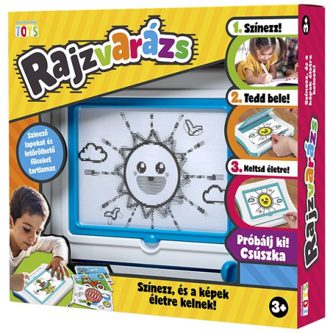 Unalmasak már a sima rajzok? Mi lenne akkor, ha a képek mozognának?A Rajzvarázs segítségével nemcsak a színezés válik érdekesebbé, hanem az animáció világával is egyszerűen és kézzelfogható módon ismerkedhetnek meg a gyerekek. A színezőlapokat csak be kell helyezni a Rajzvarázsba, hogy a csúszka mozgatásával megelevenedjenek a rajzok. A szett letörölhető és újraszínezhető színezőlapokat is tartalmaz, ráadásul a 3 részből álló színezőlapokat a gyerekek