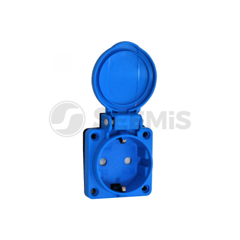 1 kép TP Electric BEÉPÍTHETŐ MŰANYAG DUGALJ CSAPFEDELES KÉK 16A, GYERMEKVÉDELEMMEL (IP54) CSAVAROS BEKÖTÉSSEL