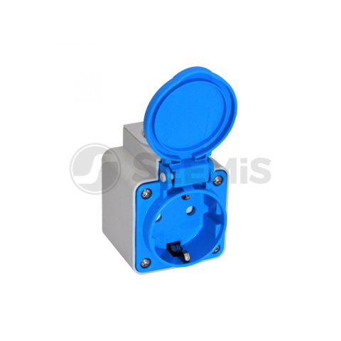 1 kép TP Electric FELÜLETRE ÉPÍTHETŐ MŰANYAG DUGALJ CSAPFEDELES KÉK 16A GYERMEKVÉDELEMMEL (IP54)CSAVAROS BEKÖTÉSSEL