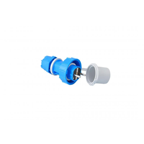 Feszültség: 250V Áramerősség: 16A Szín: kék Védettség:IP68 Méret: 135 x 65 mm - Pólusok száma: 2P - (2P +F )