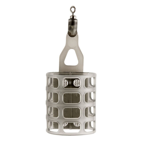 Széles méretválasztékban elérhető, kapoccsal rögzíthető műanyag testű kosár. A lapos fenekének és súlyozásának köszönhetően mindig a megfelelő pozícióban landol.