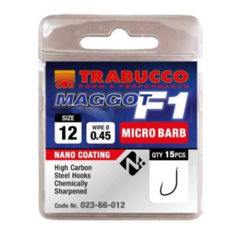 1 kép Trabucco F1 Maggot mikro szakállas horog 16 15 db