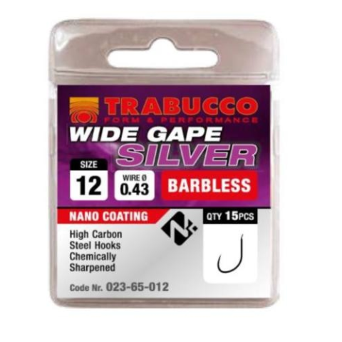 1 kép Trabucco Wide Gape Silver szakáll nélküli horog 14 15 db