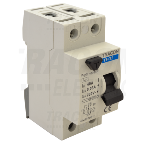 1 kép TRACON Áram-védőkapcsoló, 2 pólusú40A, 30mA, 6kA, A / AC