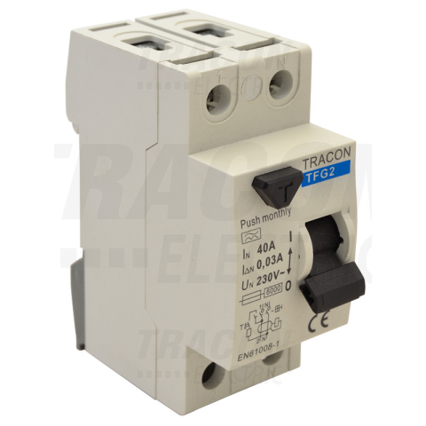 1 kép TRACON Áram-védőkapcsoló, 2 pólusú 25A, 30mA, 6kA, A / AC